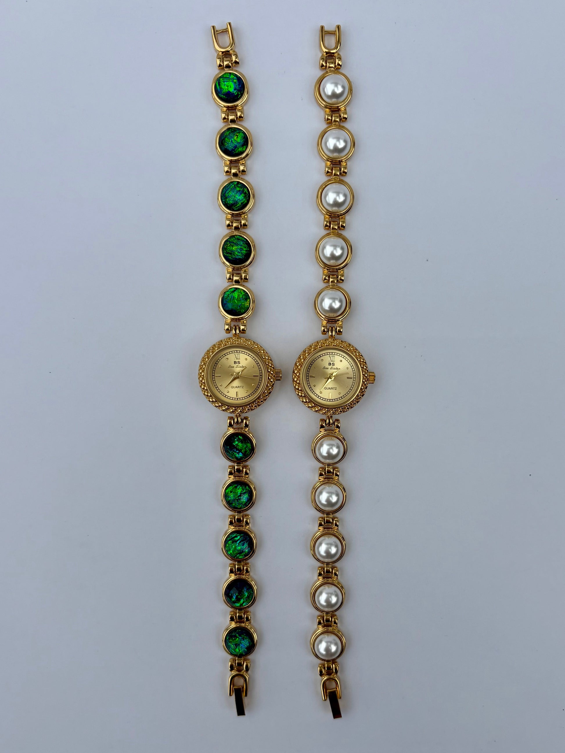 Emerald Green/Blue/ Pearl Gold Toned Watch - so unique!