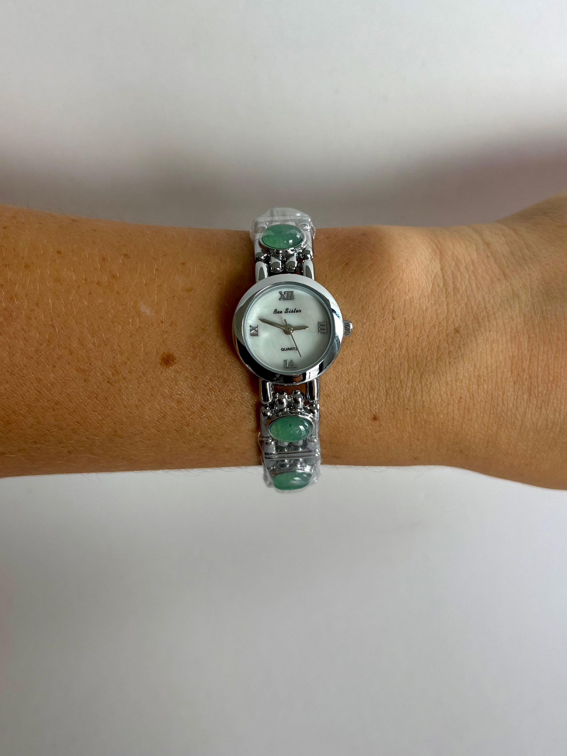 Dainty Vintage White Face Jade Bar Silver Womens Watch
