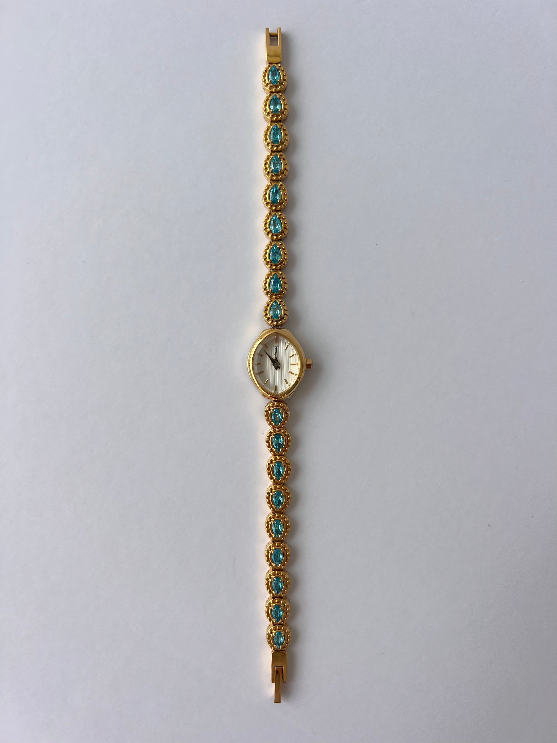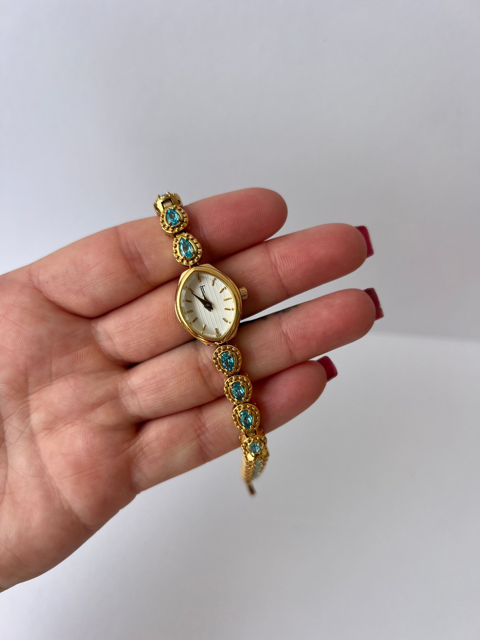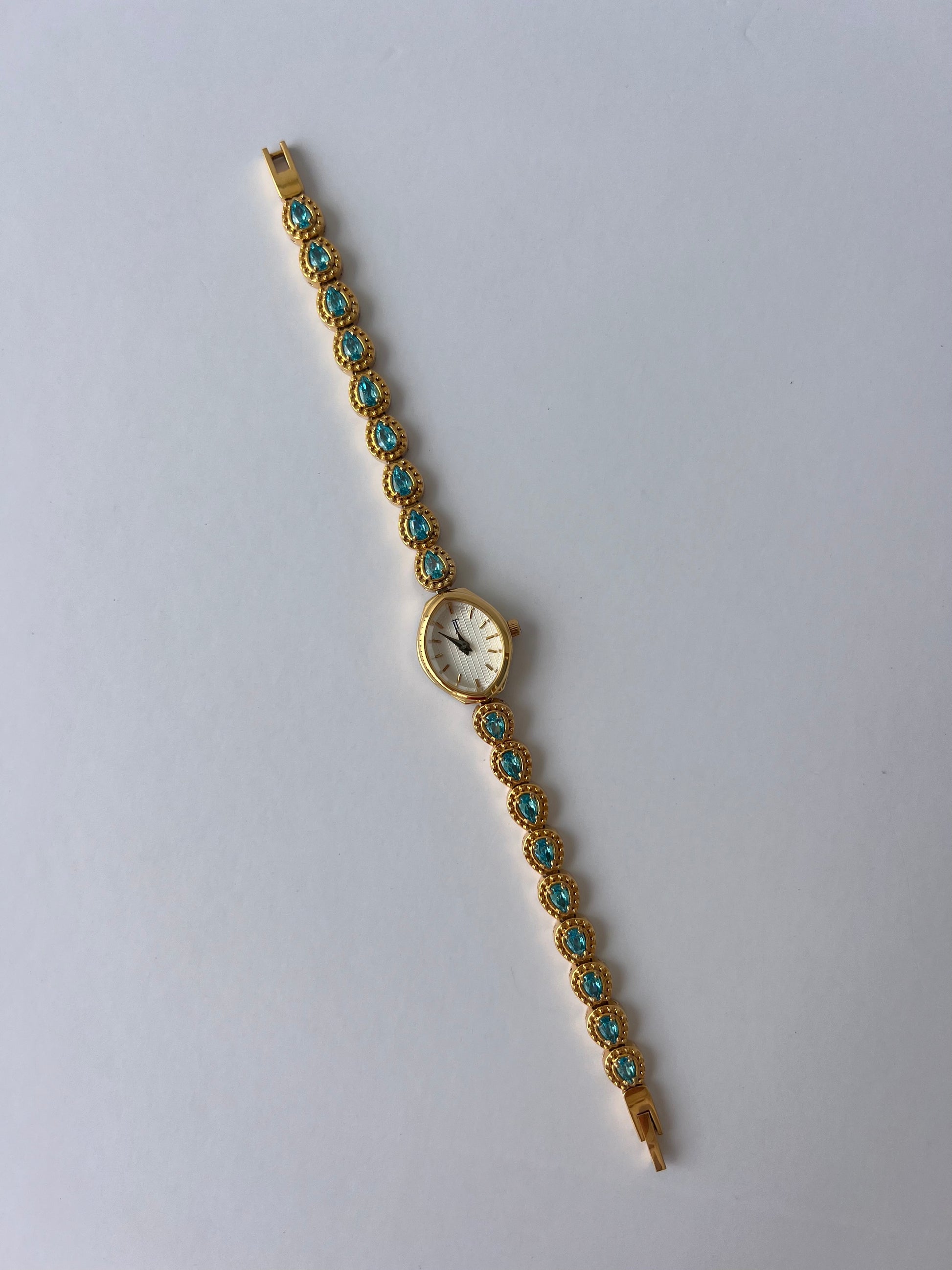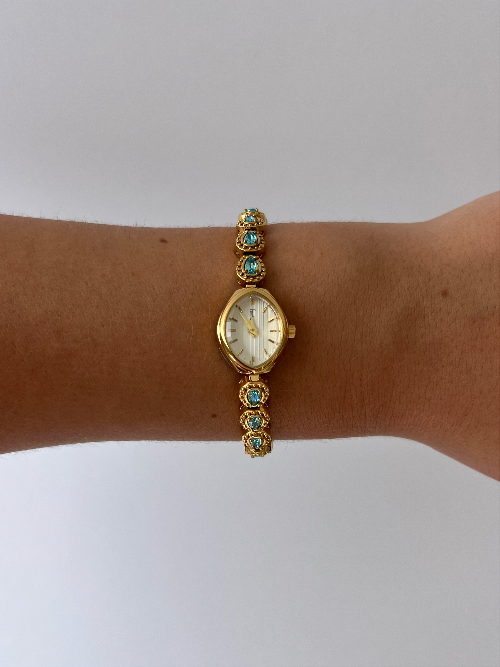 Jo Jasmine Vintage Blue Diamond Gold Women’s Watch Dainty