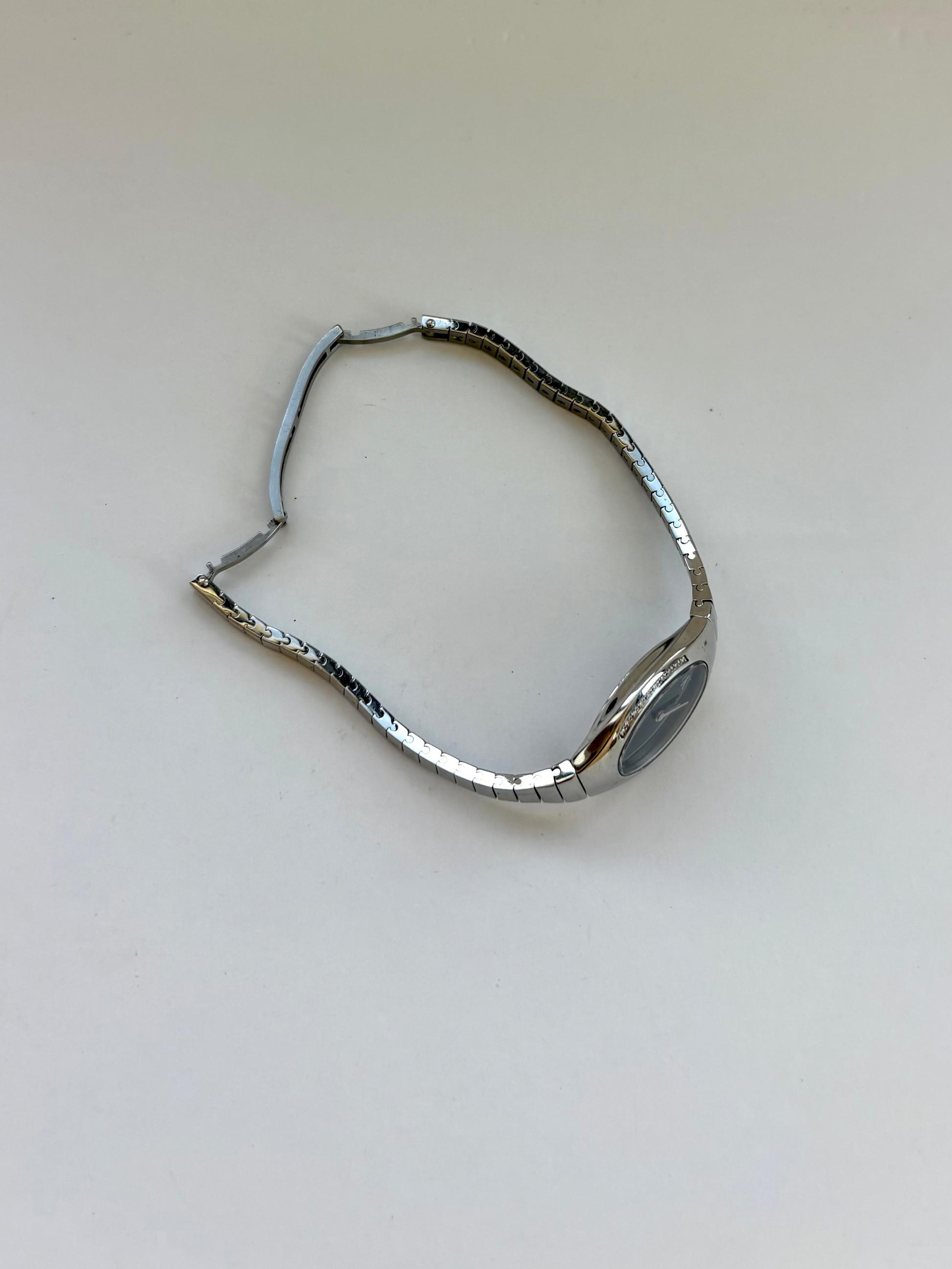 Rare Vintage Black and Silver Round Black Dial Womens Watch