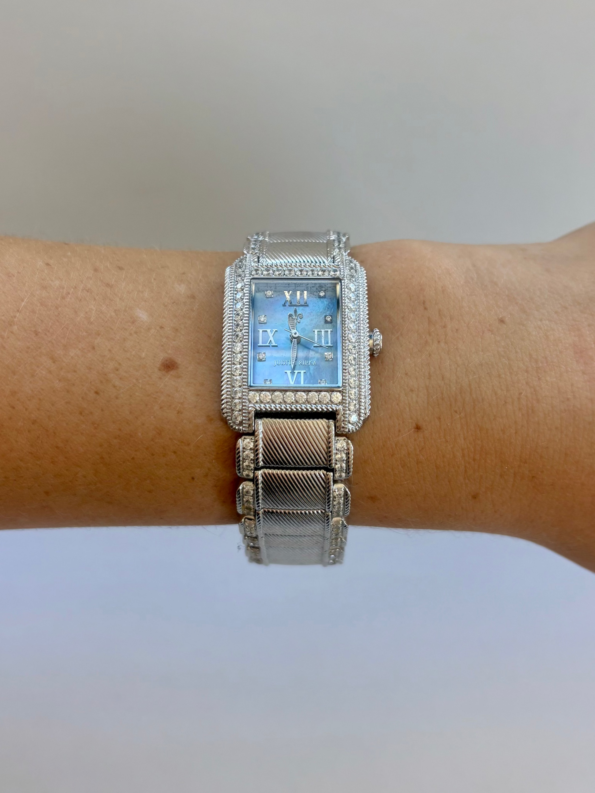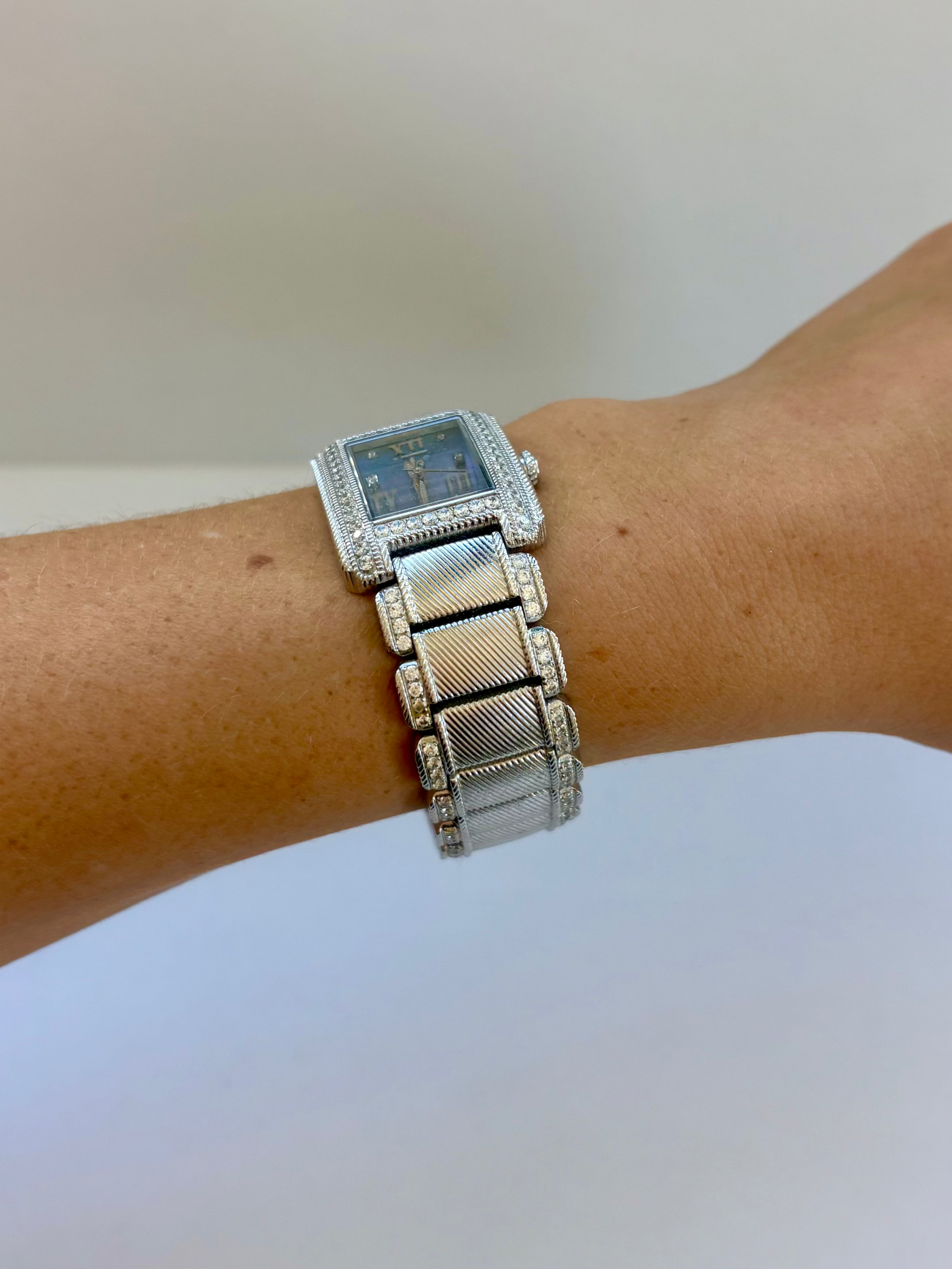 Rare Vintage Silver Toned with Blue Face Womens Watch