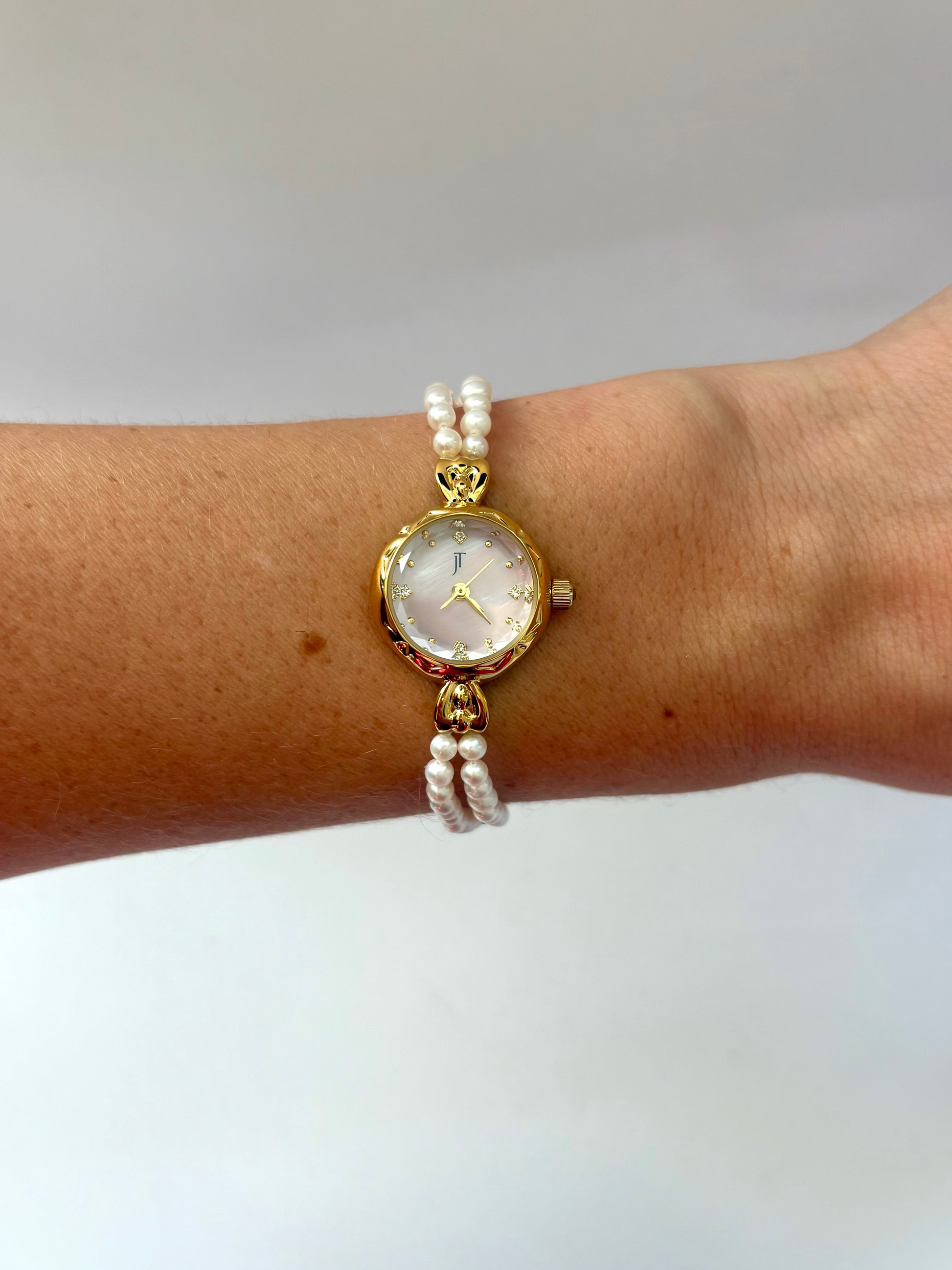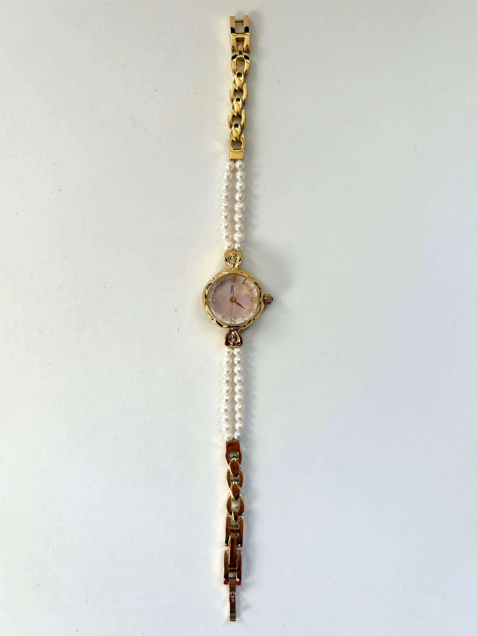 Vintage Gold Pink Dial Pearl Womens Watch Small Face - so unique!