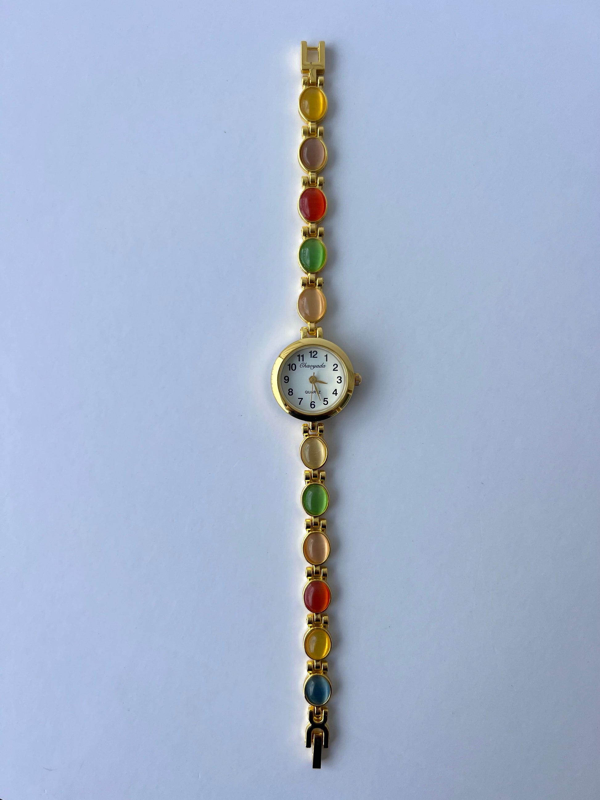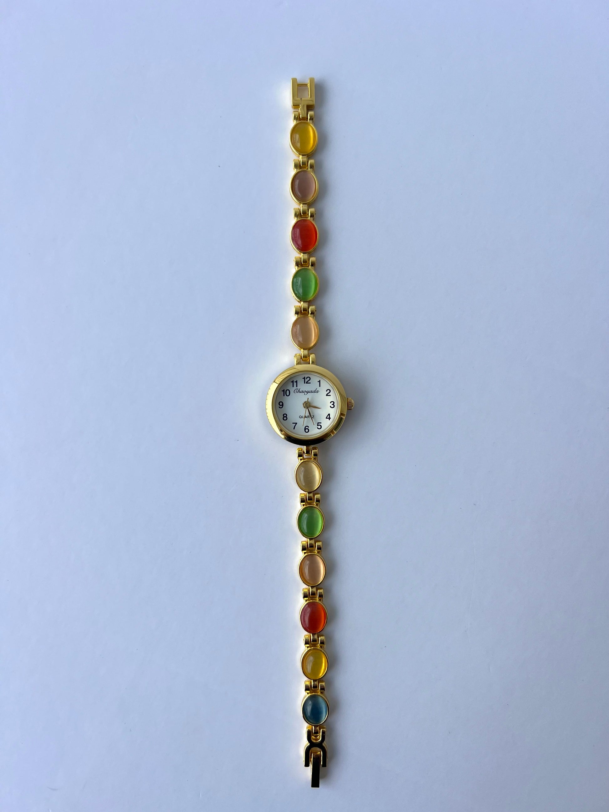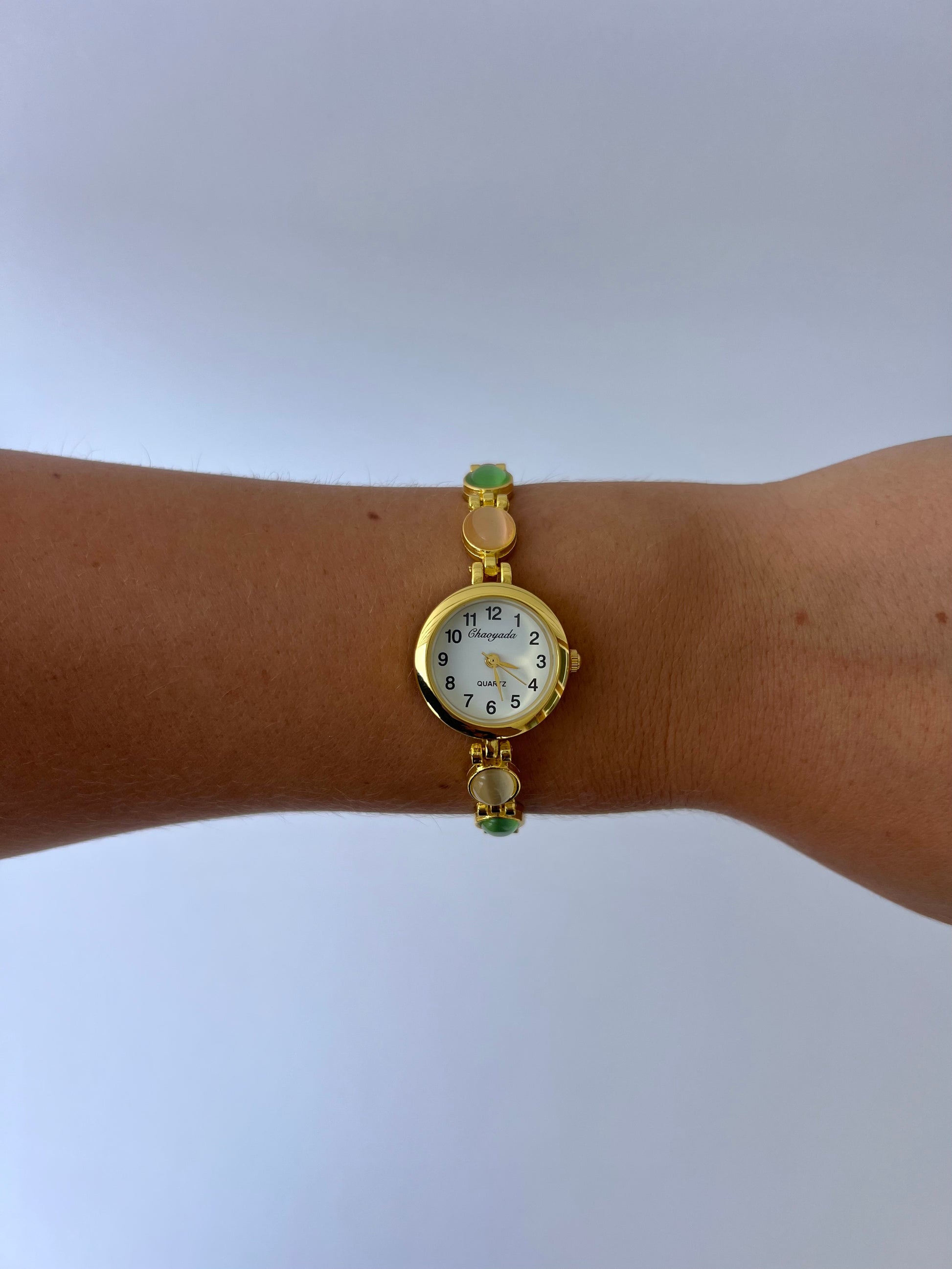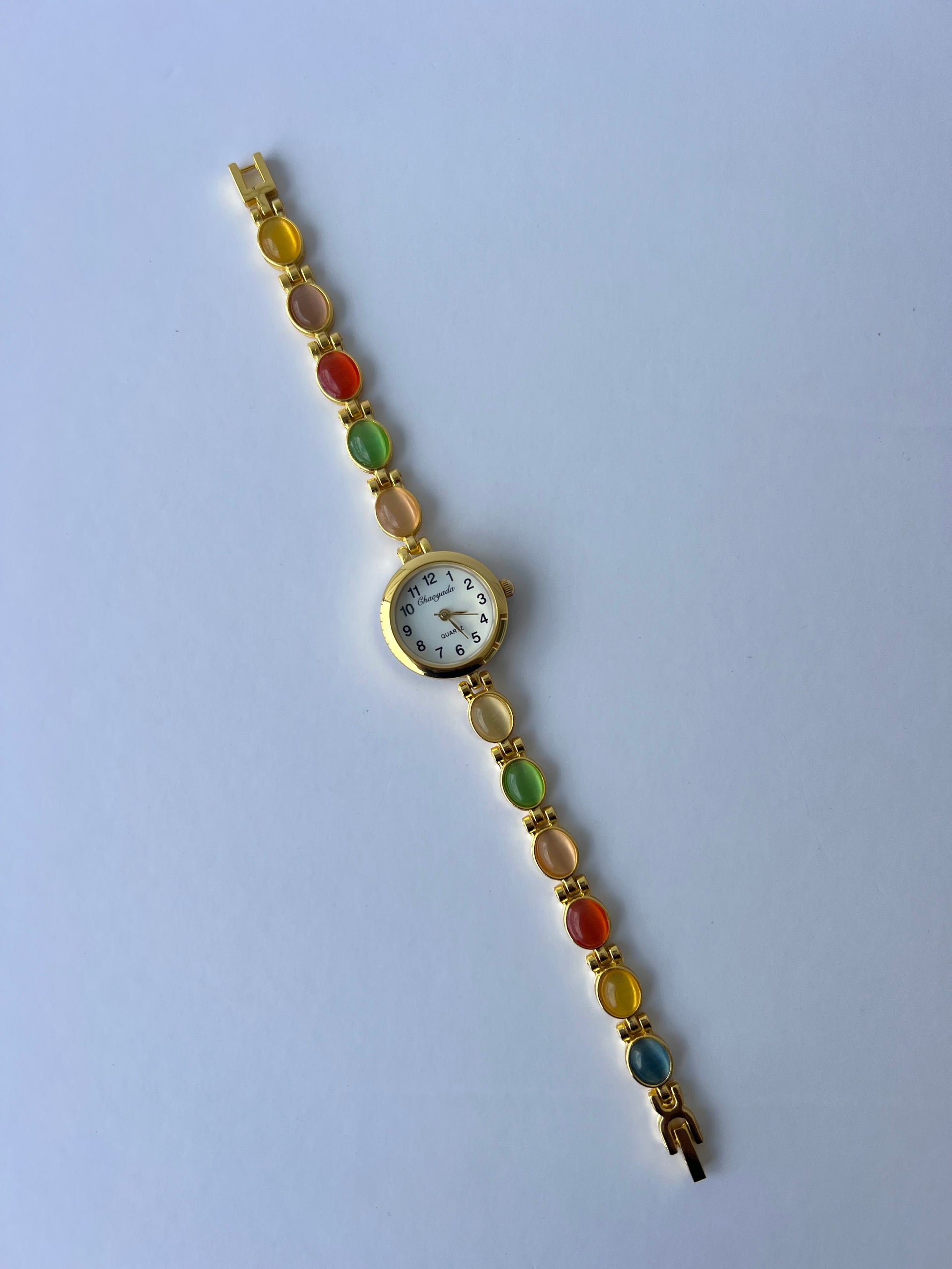 Vintage Pastel Colorful Gold Womens Round Bracelet Quartz Watch Small Dainty Face